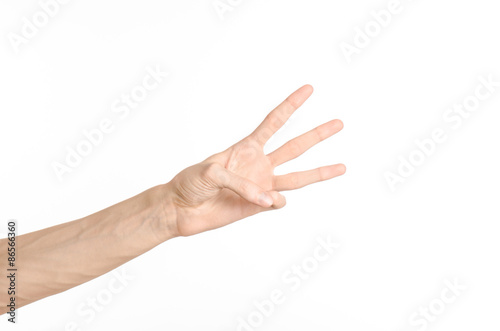 Hand gestures theme: the human hand shows gestures isolated on white background in studio