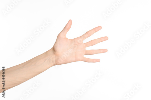 Hand gestures theme: the human hand shows gestures isolated on white background in studio