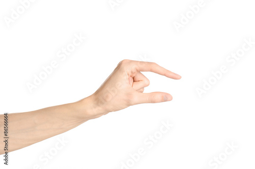 Hand gestures theme: the human hand shows gestures isolated on white background in studio