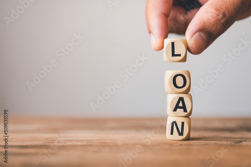 Hand hold wooden block with the word "LOAN". concept of real estate loan agreement, real estate loan