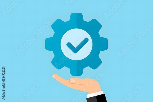 Hand Holding a Blue Gear with Checkmark Design Illustration Concept of Service Solution Automation System