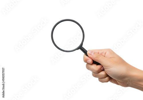 hand holding a magnifying glass on transparent background, png