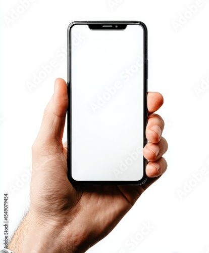 Hand Holding a Modern Smartphone with Empty Screen in Front of White Background