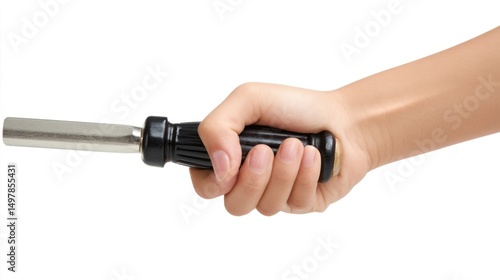Hand Holding a Screwdriver, Close-Up of Tool Grip for DIY and Repair Projects in Home and Workshop Settings