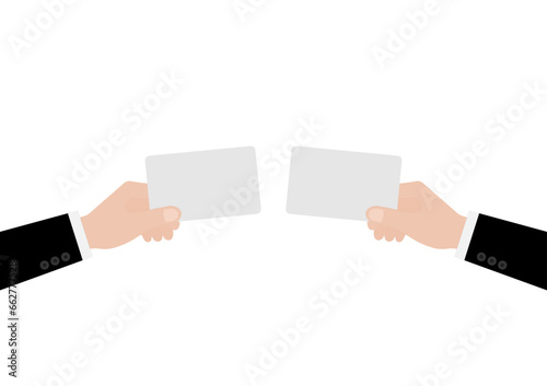 Hand Holding Blank Credit Card or Business Card. Hand Showing Empty Card. Vector Illustration Isolated on White Background.