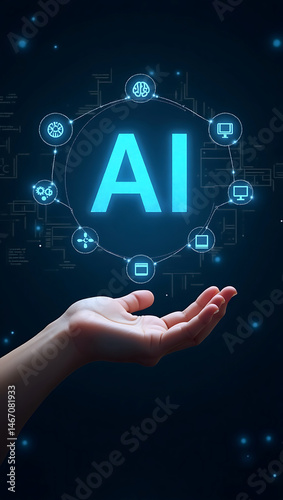 Hand Holding Digital AI Interface with Futuristic Technology Icons