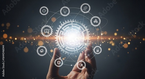 Hand Holding Digital Gears Technology Innovation Connection and Future Concepts.