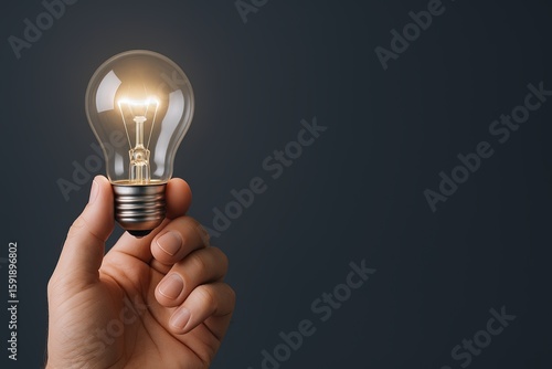 Hand holding glowing incandescent light bulb against dark background for idea innovation.