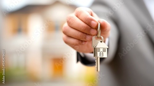 Hand Holding House Keys with Keychain in Focused Close-Up View