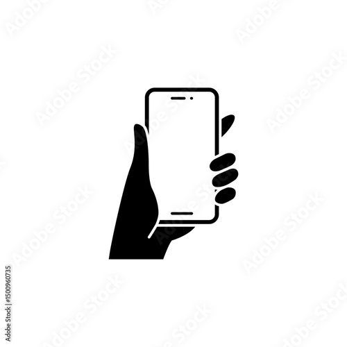 Hand holding smartphone icon. Simple solid style. Hold mobile phone with white screen. Glyph vector illustration isolated