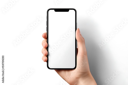 Hand Holding Smartphone with Blank White Screen, App Mockup