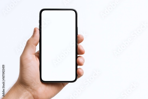 Hand Holding Smartphone with Blank White Screen for App Promotion and Mobile Technology Display