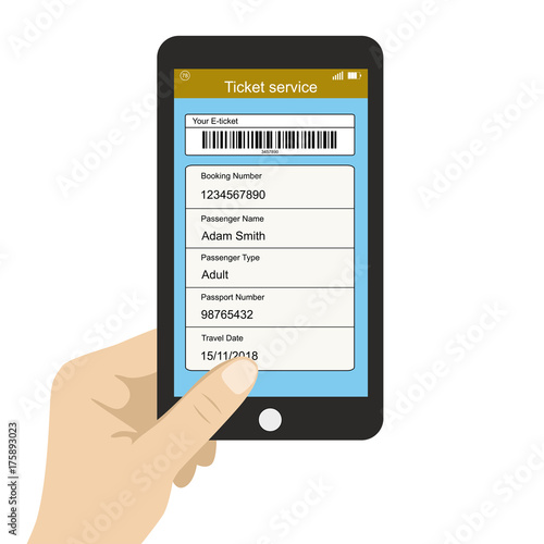 Hand holding smartphone,ticket service app on screen,