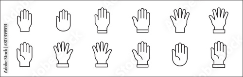 Hand icon. Palm hand icons. Hands symbol collection. Hands icon symbol of participate, volunteer, stop, vote. Vector stock graphic outline style design illustration resource for UI and buttons.