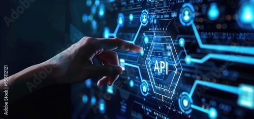 Hand Interacting with API Technology on Futuristic Digital Interface