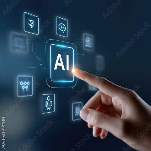 Hand interacting with digital ai interface