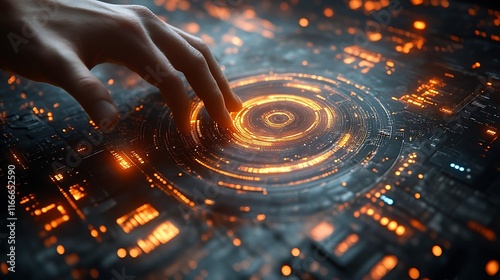 Hand interacting with futuristic interface. (1)