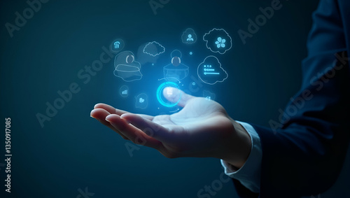Hand Interacting with Holographic Device Showcasing Evaluation of Learning Outcomes: Emphasizing Educational Success in a Minimalist Empty Space Background