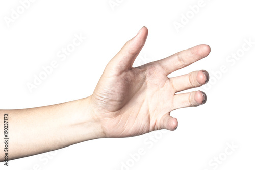 Hand open and ready to help or receive. Gesture isolated on white background with clipping path.