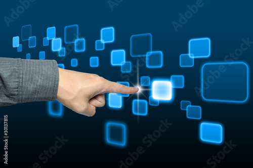 hand pushing a button on a touch screen interface