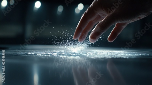 Hand Reaching to Sparkling Water Droplets on Smooth Surface