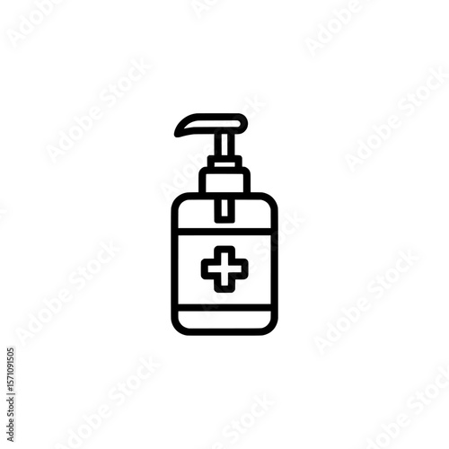 Hand sanitizer bottle with a cross symbol in black outline on white on transparent background , no background