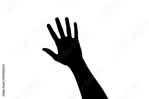Hand silhouette with fingers spread wide isolated on transparent and white background.PNG image