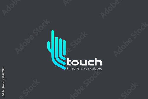 Hand Touch Finger Logo click press touchscreen app vector design template linear outline style.