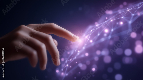 Hand touching a digital chatbot in a vibrant global network