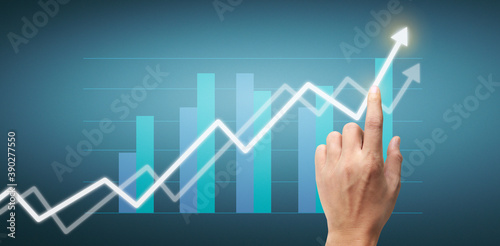 Hand touching a graphs of financial indicator accounting market economy analysis chart