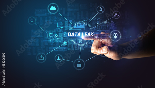 Hand touching cybersecurity button concept