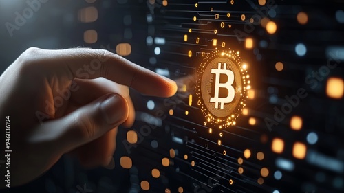 Hand touching DIGITAL CURRENCY inscription, new business technology concept