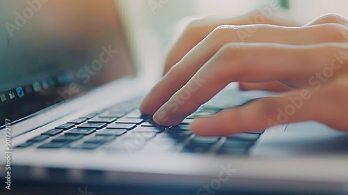 Hand Typing on a Keyboard: A close-up of hands typing on a sleek laptop keyboard.