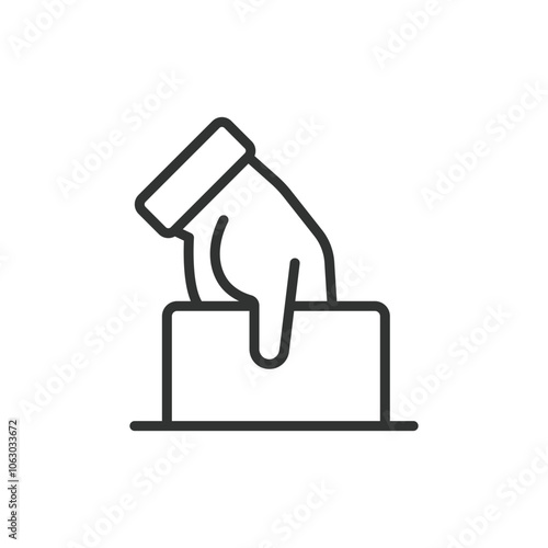 Hand voting bulletin, icon in line design. Voting, ballot, hand, election, participation, democracy, choice on white background vector. Hand voting bulletin editable stroke icon