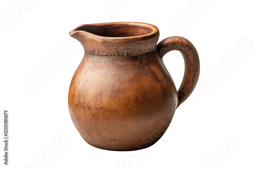 Handcrafted clay jug displayed on a neutral background, showcasing traditional pottery craftsmanship with a rustic finish