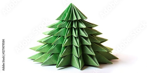 Hand-crafted green paper Christmas tree, a vintage ornament.