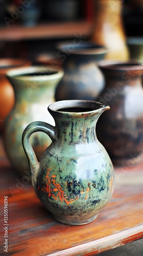 Handcrafted Rustic Green Ceramic Pitcher Pottery
