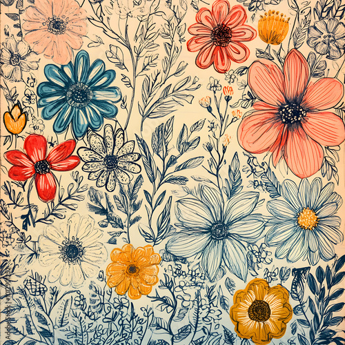 Hand-drawn 2D Doodle Tile and Carpet Patterns with White Borders – Geometric, Floral, and Abstract Designs