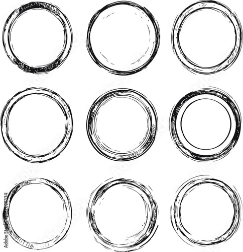 Hand-drawn black ink circles in artistic grid pattern. Vector illustration