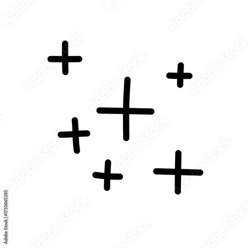 Hand-drawn doodle plus symbols, minimal sketch decoration, math or design icon.
