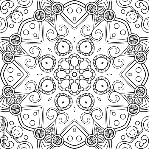 Hand-drawn mandala for coloring, square background, lace ornament pattern, monochrome contour mandala, EPS 8