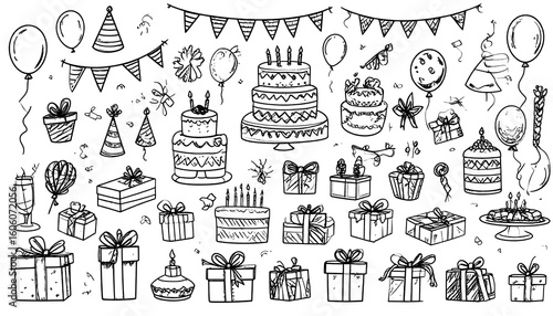 Hand-drawn party supplies collection