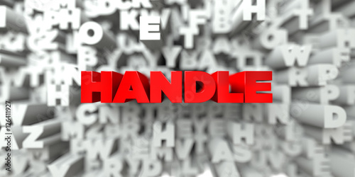 HANDLE - Red text on typography background - 3D rendered royalty free stock image. This image can be used for an online website banner ad or a print postcard.