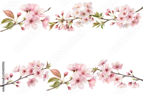 Hand-painted cherry blossom branches with gentle petals and soft tones. Great for spring designs, wedding themes, Asian aesthetics, product packaging, and romantic illustrations