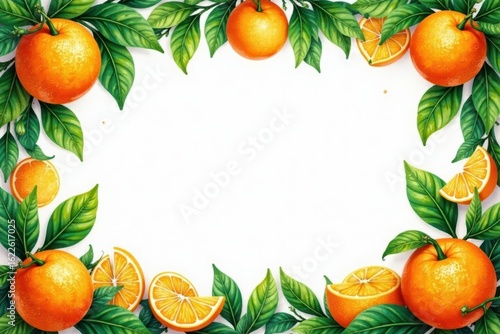 Hand-painted citrus frame Square border of oranges & foliage , natural, hand-painted