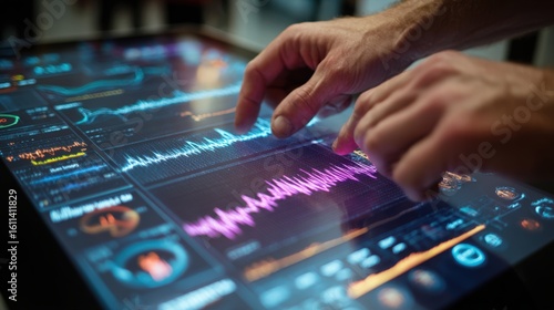 Hands Configuring Router Settings on Touchscreen with Network Diagnostics