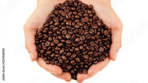 hands cradling coffee beans, warm color palette, intricate details on beans, artistic lighting, isolated on white background