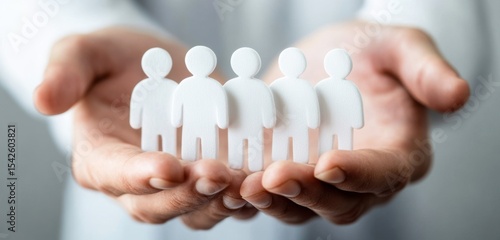 Hands Cradling Small White Figures Symbolizing Community, Support, Care, and Connection in a Collaborative Environment