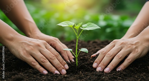 Hands Gently Planting a Seedling, Fostering Growth and Hope