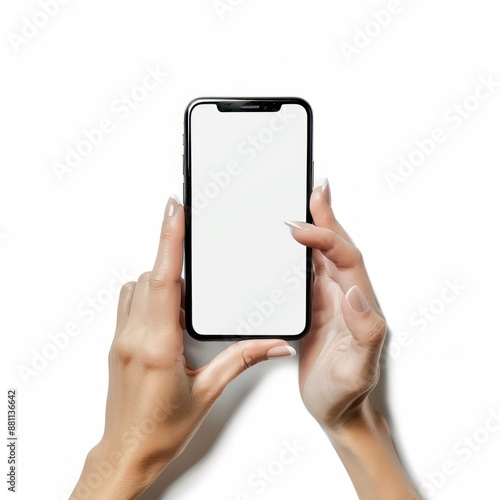 Hands Holding Smartphone with White Screen